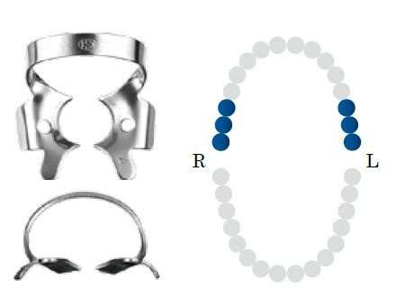 Klamra do górnych trzonowców. Z wygiętymi do dołu dziobami.