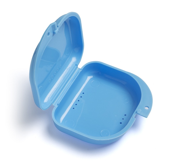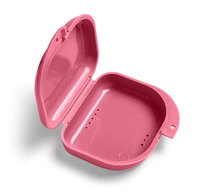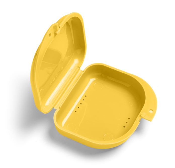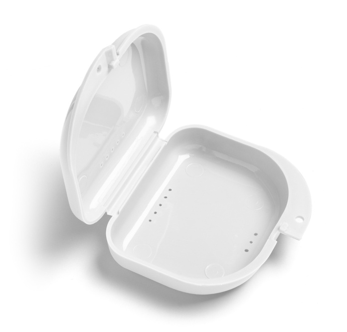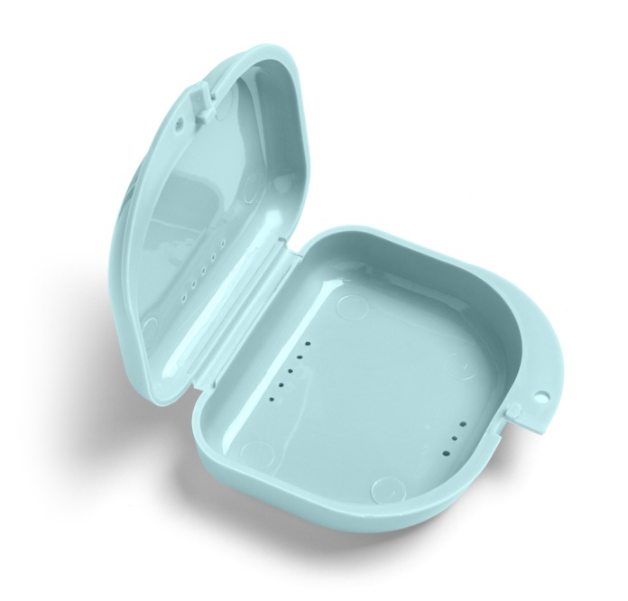Funkcjonalny pojemnik zaprojektowany do bezpiecznego przechowywania protez oraz aparatów retencyjnych.
